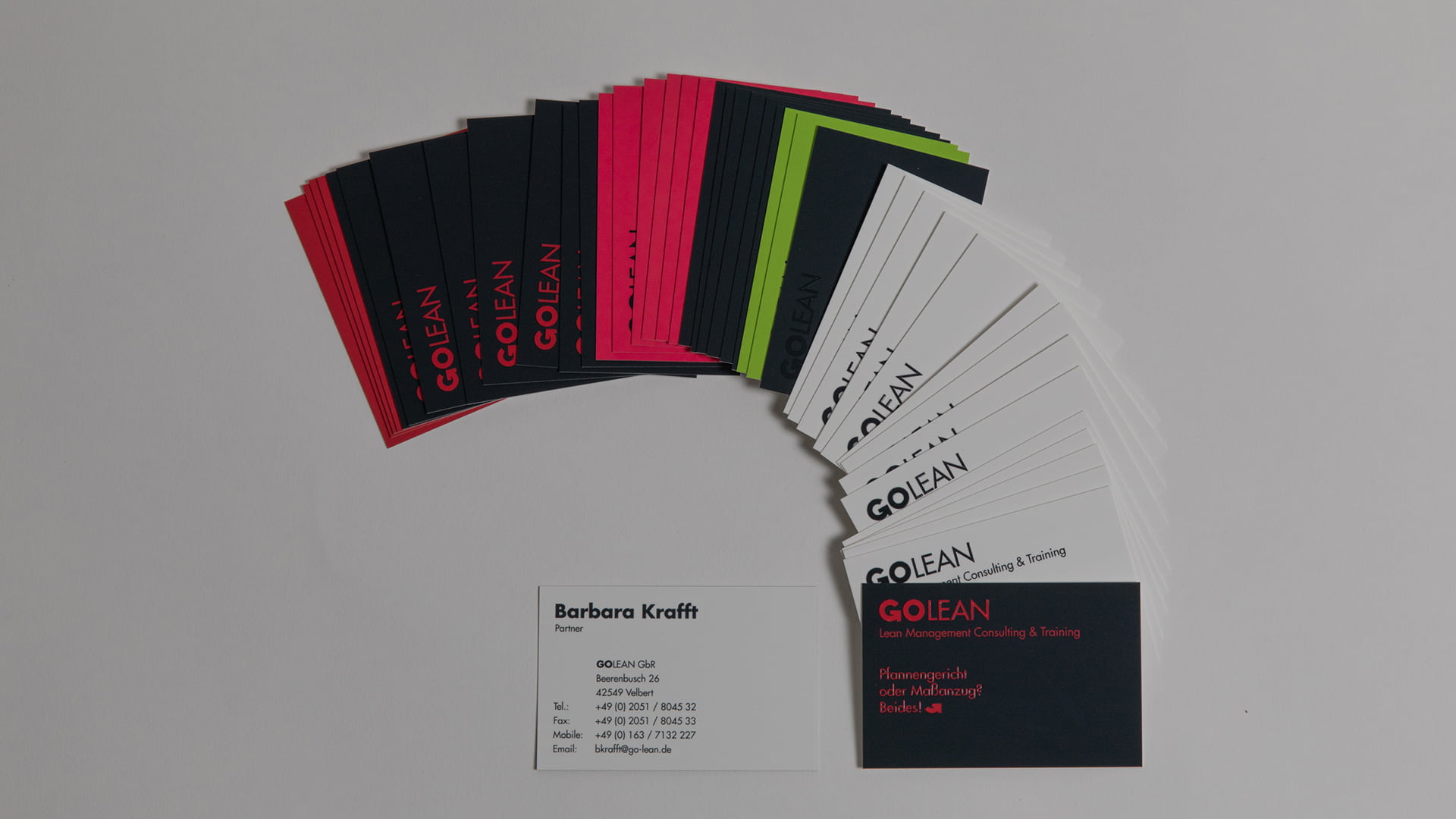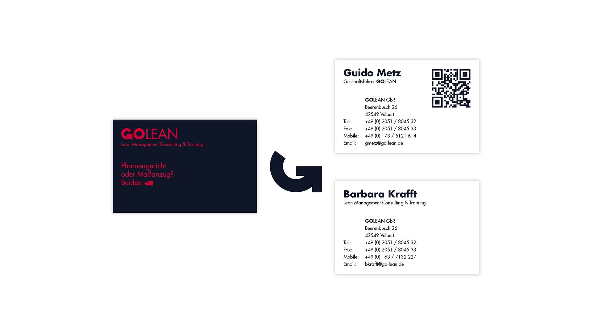 Seit 2010 arbeiten wir mittlerweile mit der GOLEAN GbR zusammen. 2019 entschied sich das Beratungsunternehmen, das auf Lean Management und Coaching spezialisiert ist, das gesamte Erscheinungsbild zu hinterfragen und erneuern zu lassen.
