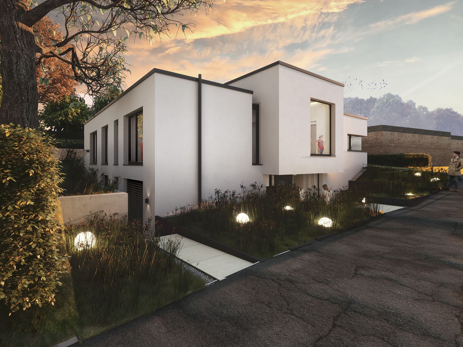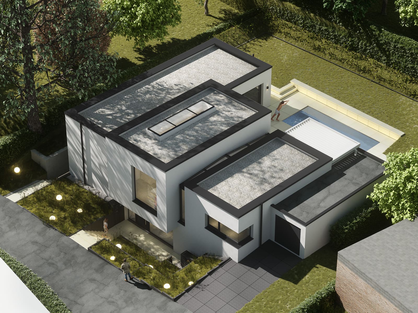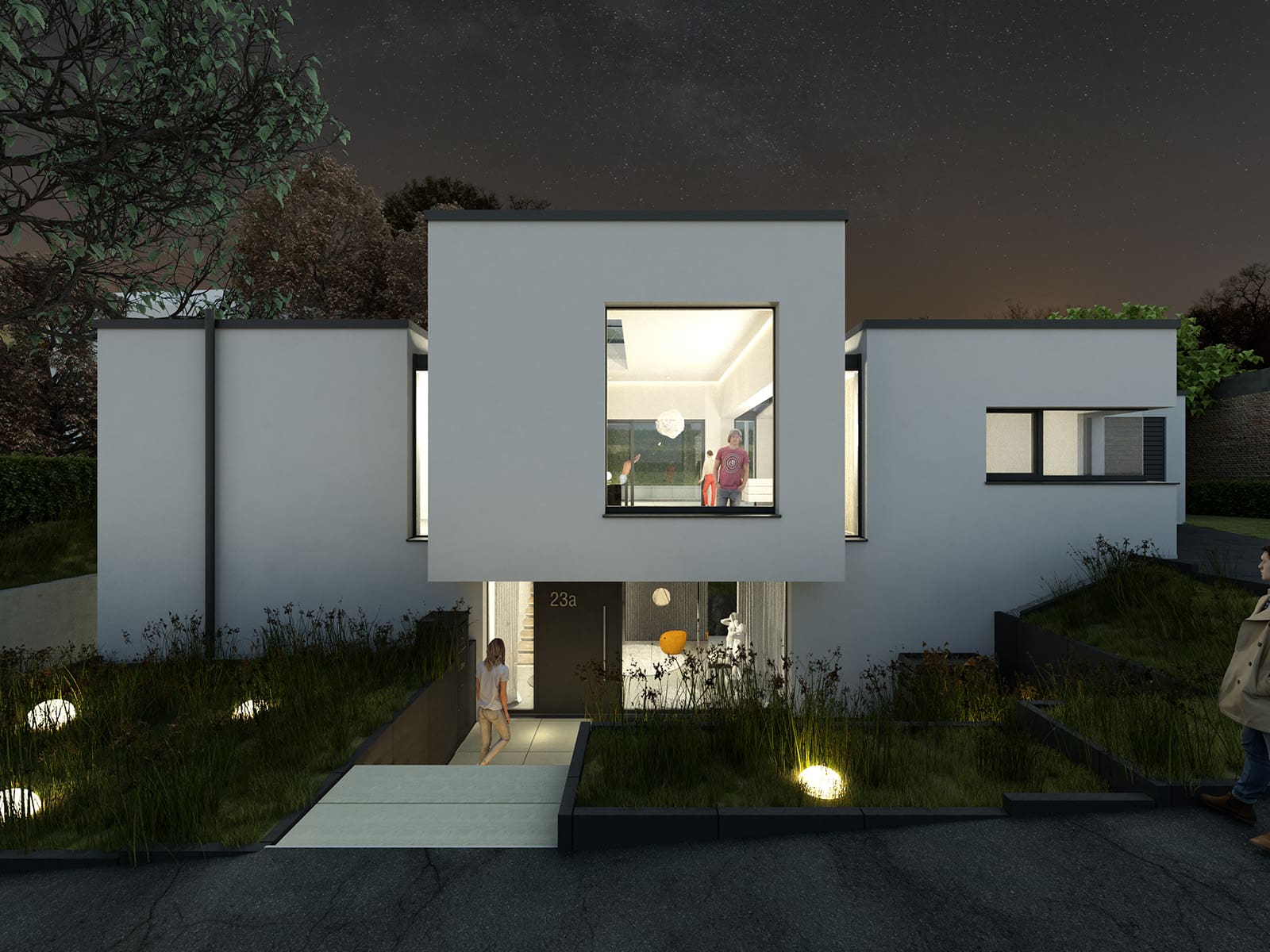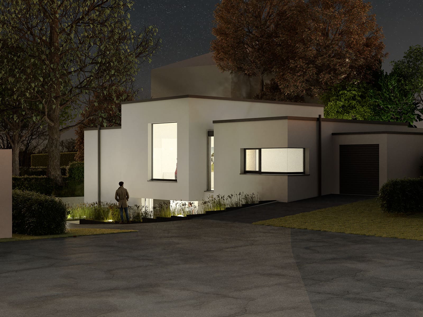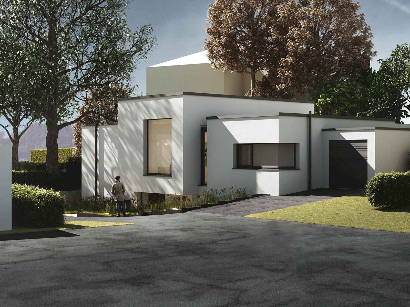 Das moderne Einfamilienhaus gliedert sich in 3 unterschiedliche Baukörper die durch Lichtfugen von einander getrennt wurden. Diese Struktur mit den 3 Kuben war maßgeblich für den Projekttitel »Die 3 Schwestern« verantwortlich.