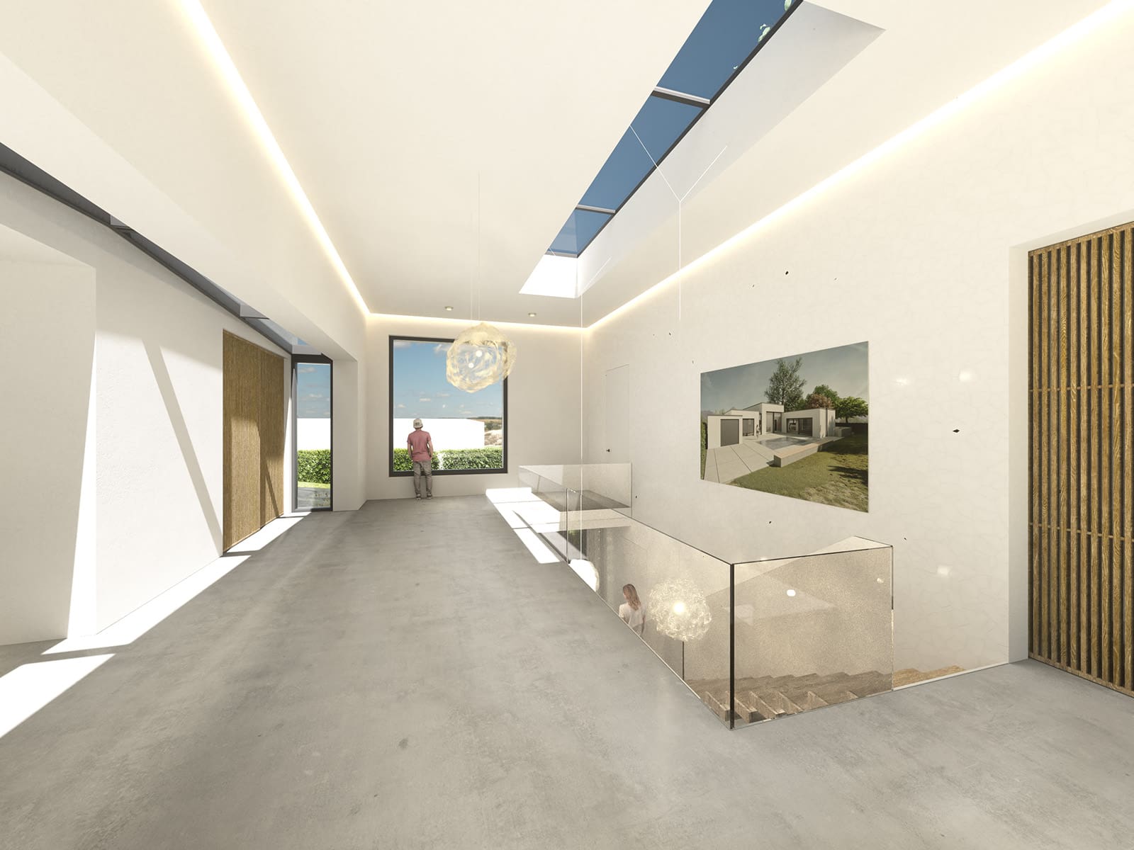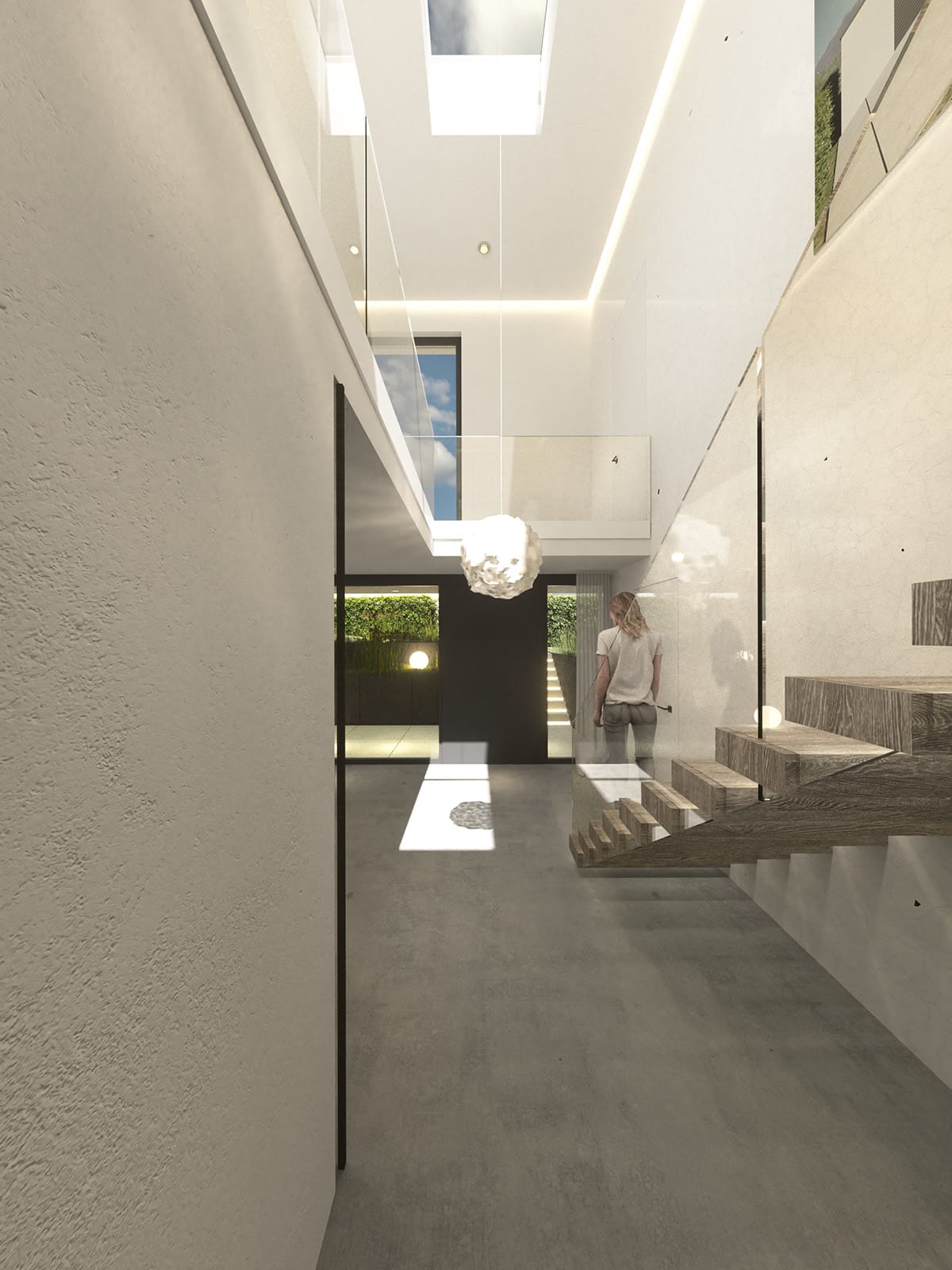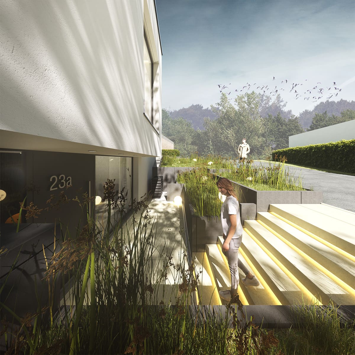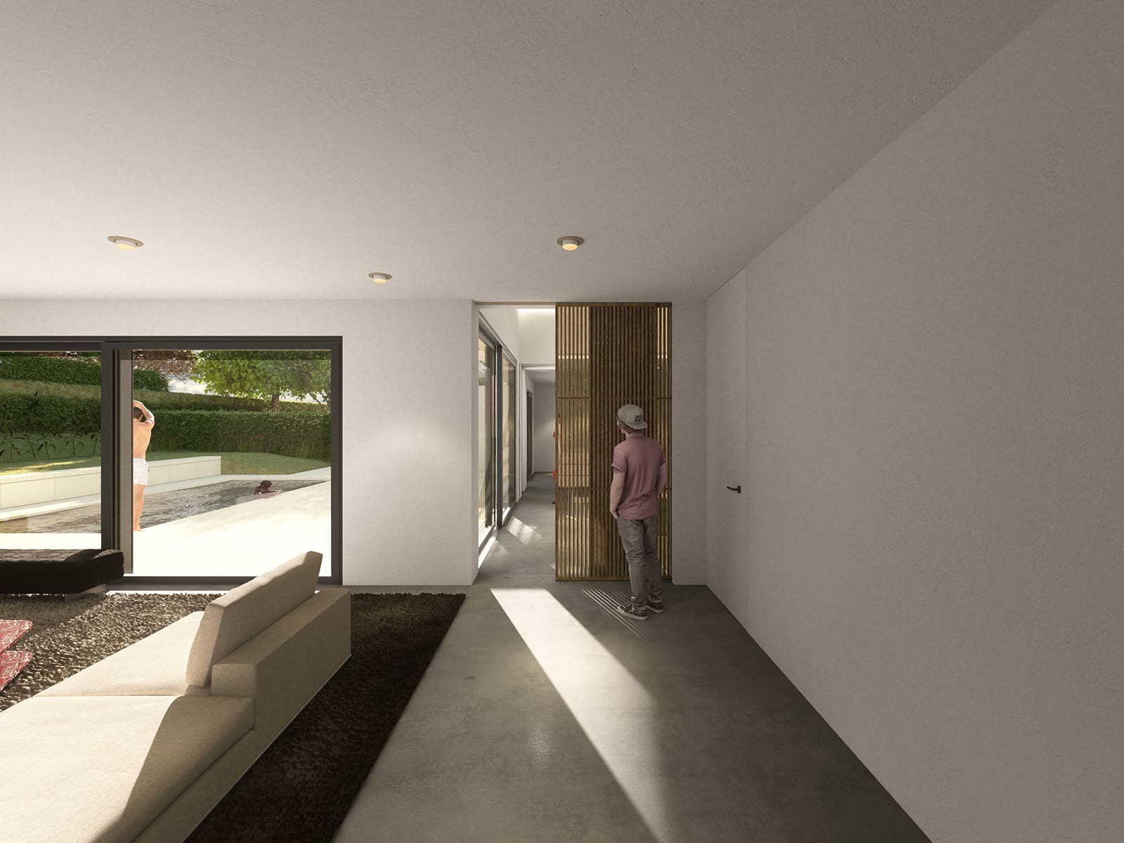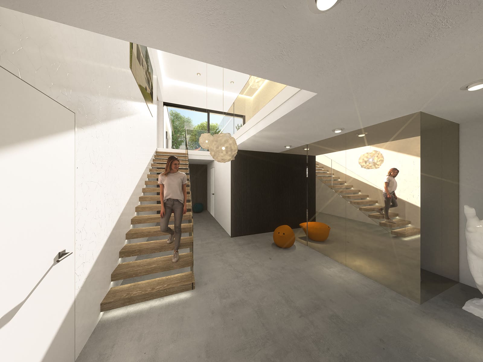 Das moderne Einfamilienhaus gliedert sich in 3 unterschiedliche Baukörper die durch Lichtfugen von einander getrennt wurden. Diese Struktur mit den 3 Kuben war maßgeblich für den Projekttitel »Die 3 Schwestern« verantwortlich.