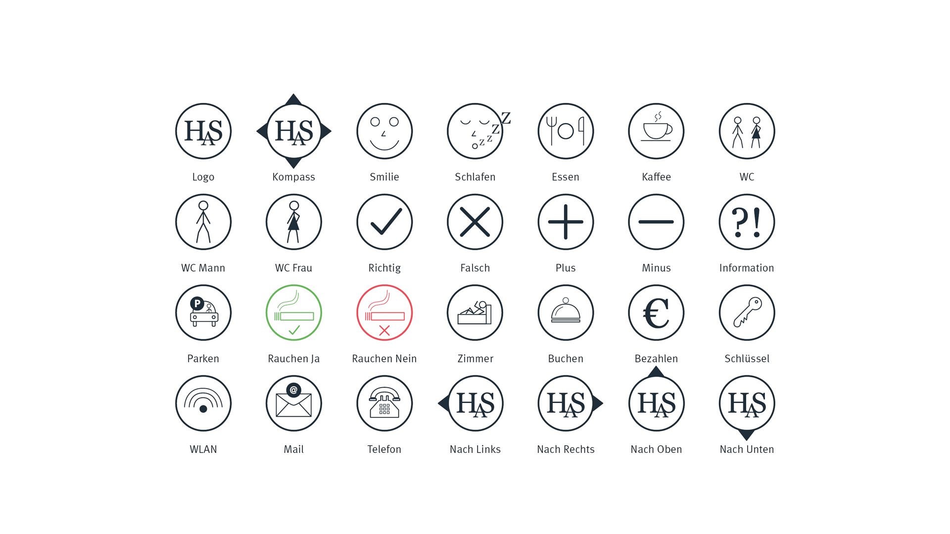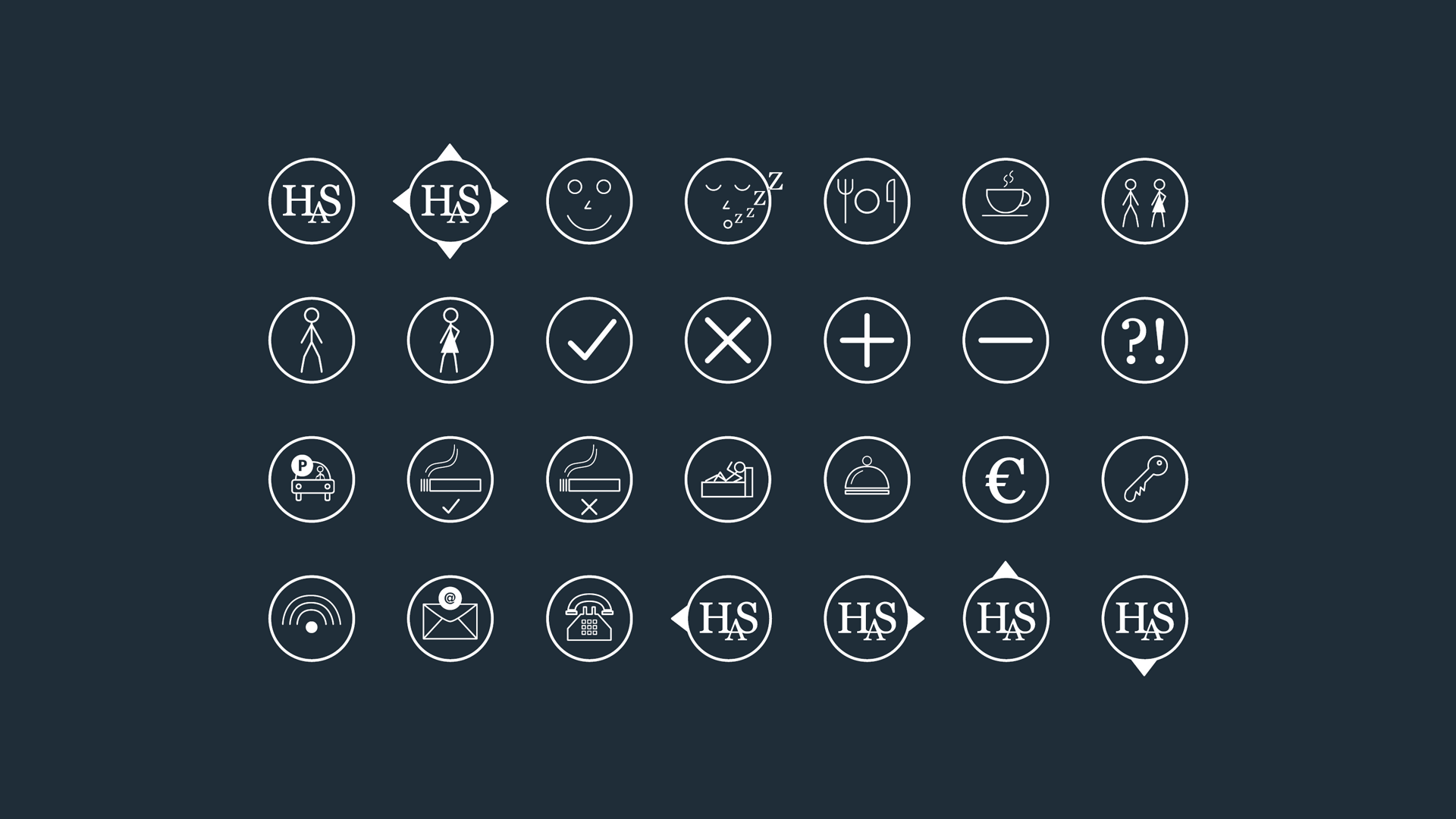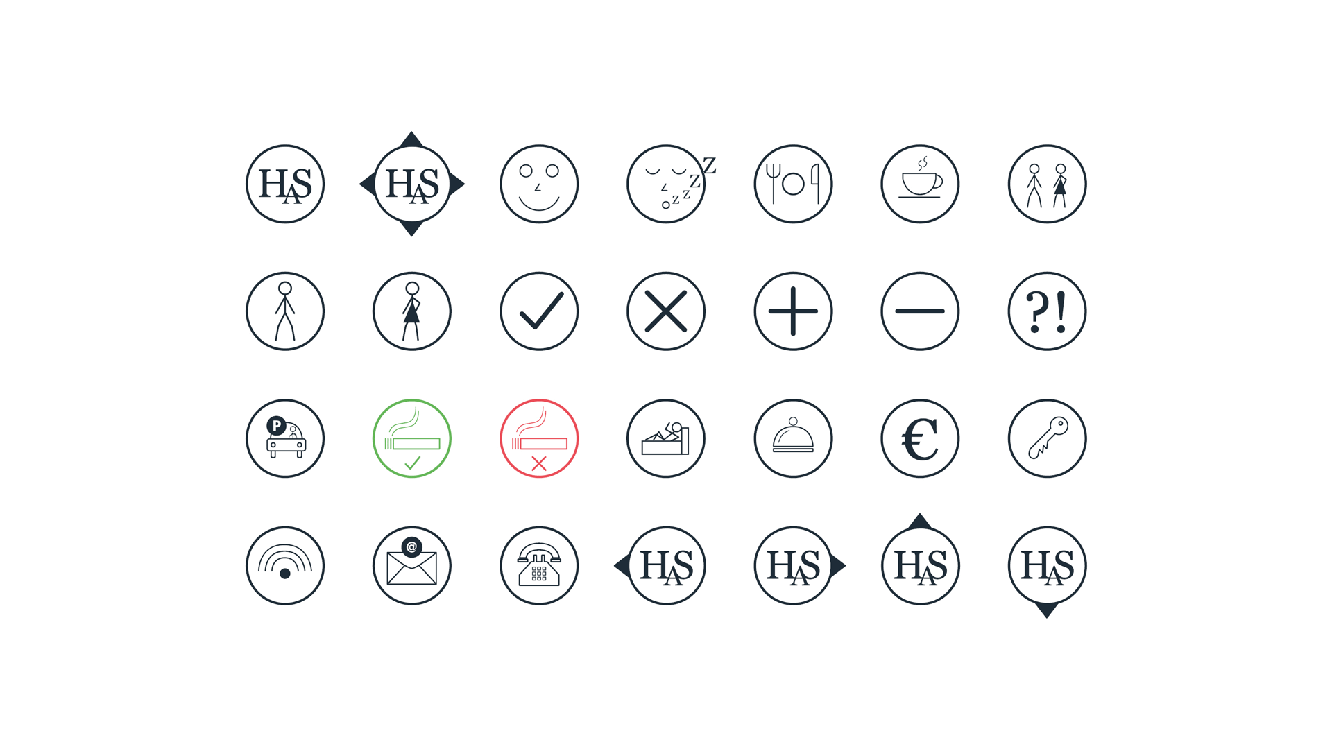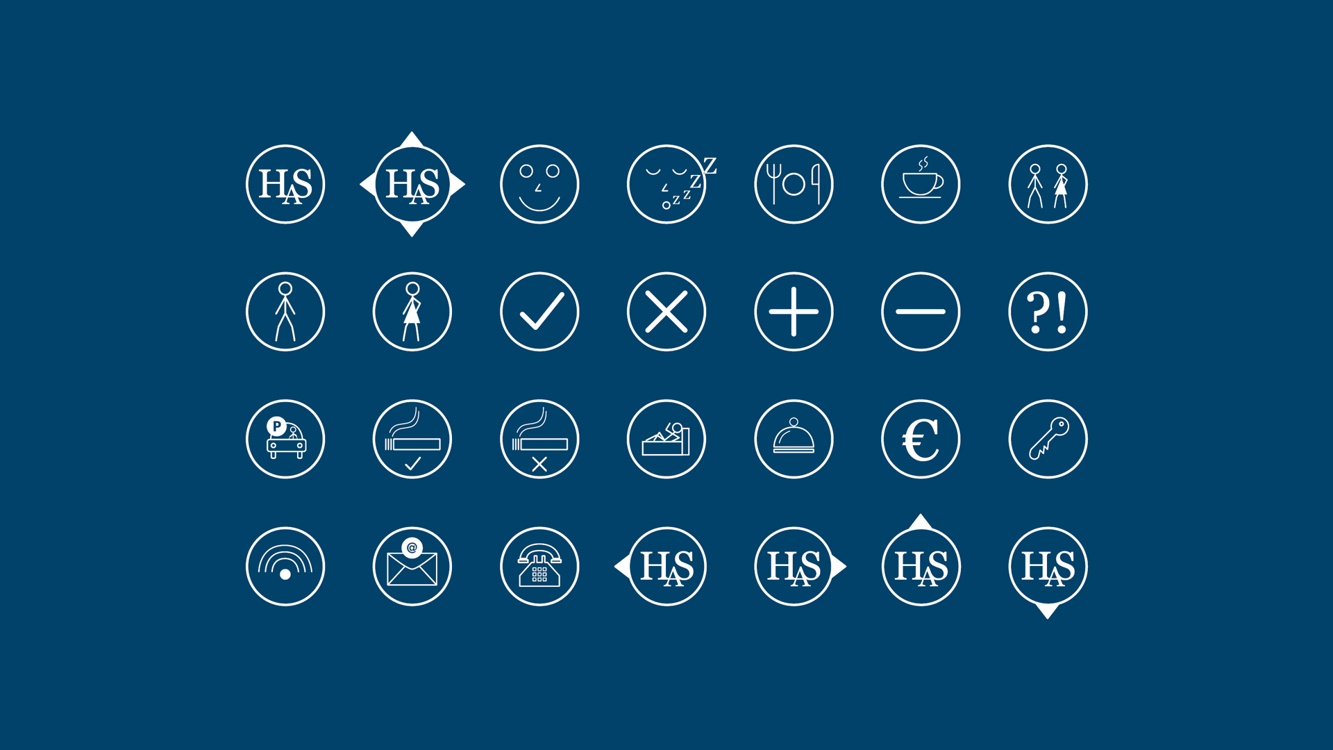 Neben zahlreichen Piktogrammen, die sich auch als Leitsystem innerhalb des Hotels wiederfinden, entwickelten wir das Logo komplett neu.